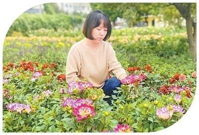 包头市园林科研所的花圃中,吴晓静在查看小丽花生长状况。 赵永峰摄