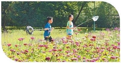 包头市阿尔丁植物园,小朋友们在小丽花丛中玩耍。 祝家乐摄